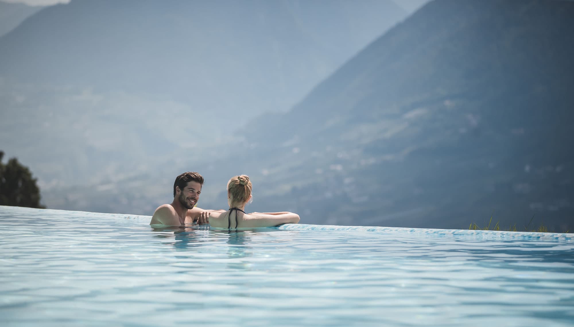 Rundum atemberaubende Aussichten über Meran und die Bergwelt. Entdecken Sie Plätze, Räume und Momente im Sonnbichl.